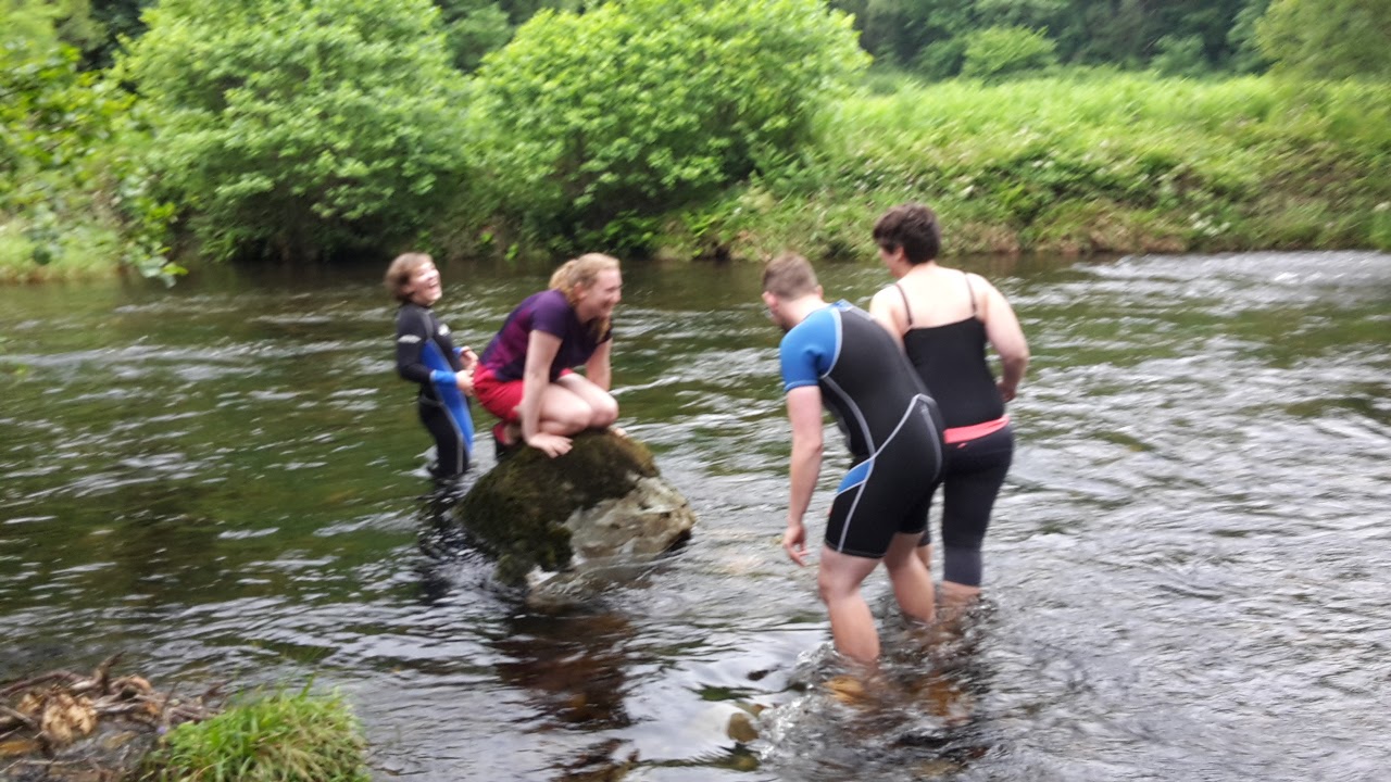 Over the last week of June, SAGUWE (including some old and new friends) ventured off to North Wales to celebrate the end of term. After cramming a LOT of kit into Lorna’s car, we all arrived safely at the beautiful Camp Snowdonia, surrounded by beautiful hills, a river and plenty of sheep! Tuesday saw half of us reach the summit of Snowdon thanks to Matt, while the other half of us had a casual day of exploring Bewts-y-Coed; including a miniature train ride for James and penguin Dottie, and the pretty sight of Swallow Falls. The evening saw some of us venturing off for a (freezing) swim in the river followed by a hearty dinner and lots of fire! The middle of our week saw a trip to Bounce Below, a terrifying experience enjoyed by most of us exploring the cavern by way of bouncing on suspended nets! The late start at Bounce Below meant we headed to a local pub in Bewts-y-Coed for some good grub after (and free Wi-Fi!). Our last day in Snowdon was a brief exploration of Ffestiniog and more trains followed by our visit to Surf Snowdonia’s Crash and Splash; a set of obstacle courses that made for some really interesting photos! After a very wet but enjoyable day (followed by hot showers!) a BBQ and some campfire songs were enjoyed by all well into the night. After taking down some rather leaky tents and playing another game of kit Tetris with Lorna’s car, we headed home to various places, from Plymouth to Scotland. All in all, it was a very damp (it was Wales, what did we expect!) but enjoyable week's break with plenty of #BugBitesAndBruises to prove it! Thanks to our very own Q for all the hard work and organisation she put into making this camp so amazing for us all!