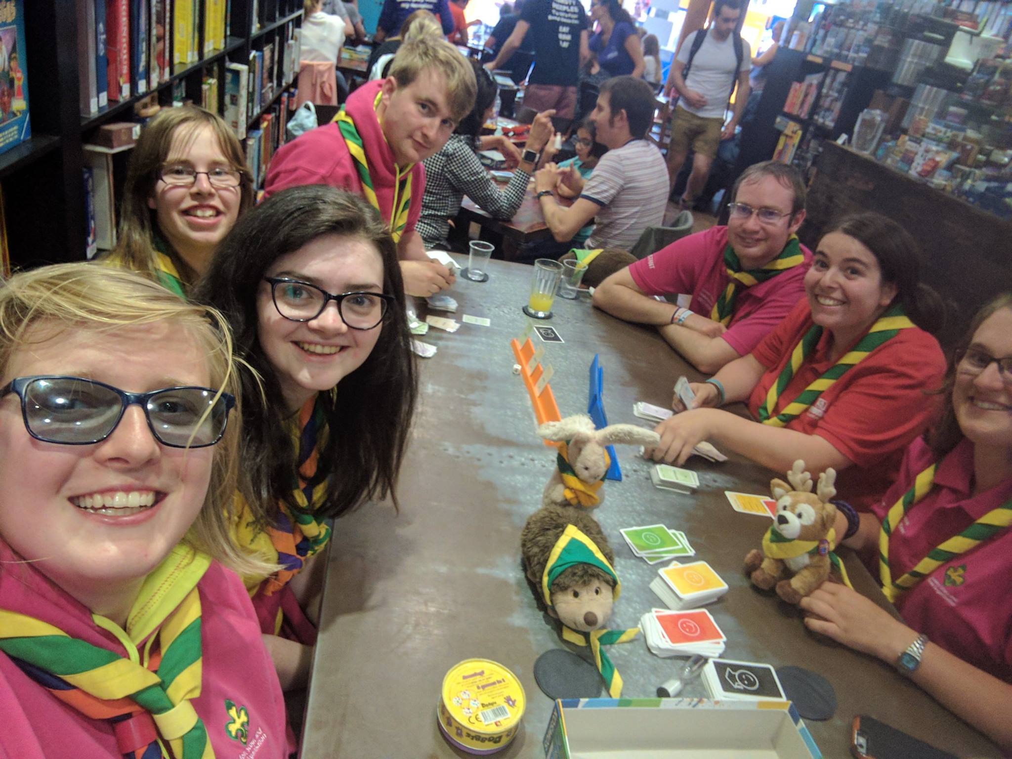 On Saturday the National Exec held their meeting while the Assistants, ate scones and plotted their revenge before departing on an Anona guided walk to Oxford- alas without a field of wheat to run through. Team building continued in "Thirsty Meeples"; board game cafe. The staff was great at helping us select some fun games. One in particular called Word Slam involved in splitting into two teams (naturally we chose Exec Vs. Assistants). Like charades we randomly picked up a card which had a selection of words on, after rolling the dice we narrowed it down to one word/phrase/object. Then one person in each team (who were the only people allowed to see this word) had to use a range of cards e.g. adjectives, colours etc. to communicate to their team what the word was. Lauren and Oli got "Dora the Explorer"; which resulted in Oli selecting "Small women child do journey, literature"; but the assistants did not get it! Nor did the execs on the other side of the table, so after quite awhile the answer was revealed. A game we would highly recommend - very fun!