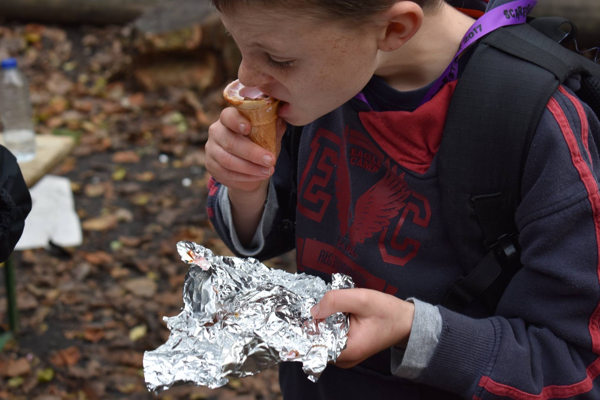 Of course, there got to a point in the day when the fun and games started. We were particularly impressed with one explorer who could catch many small marshmallows in his mouth consecutively (trust me, this is harder than it sounds/looks!). Not to mention the marshmallow fights. Backwoods cooking was also involved in the production of a fire safety video.